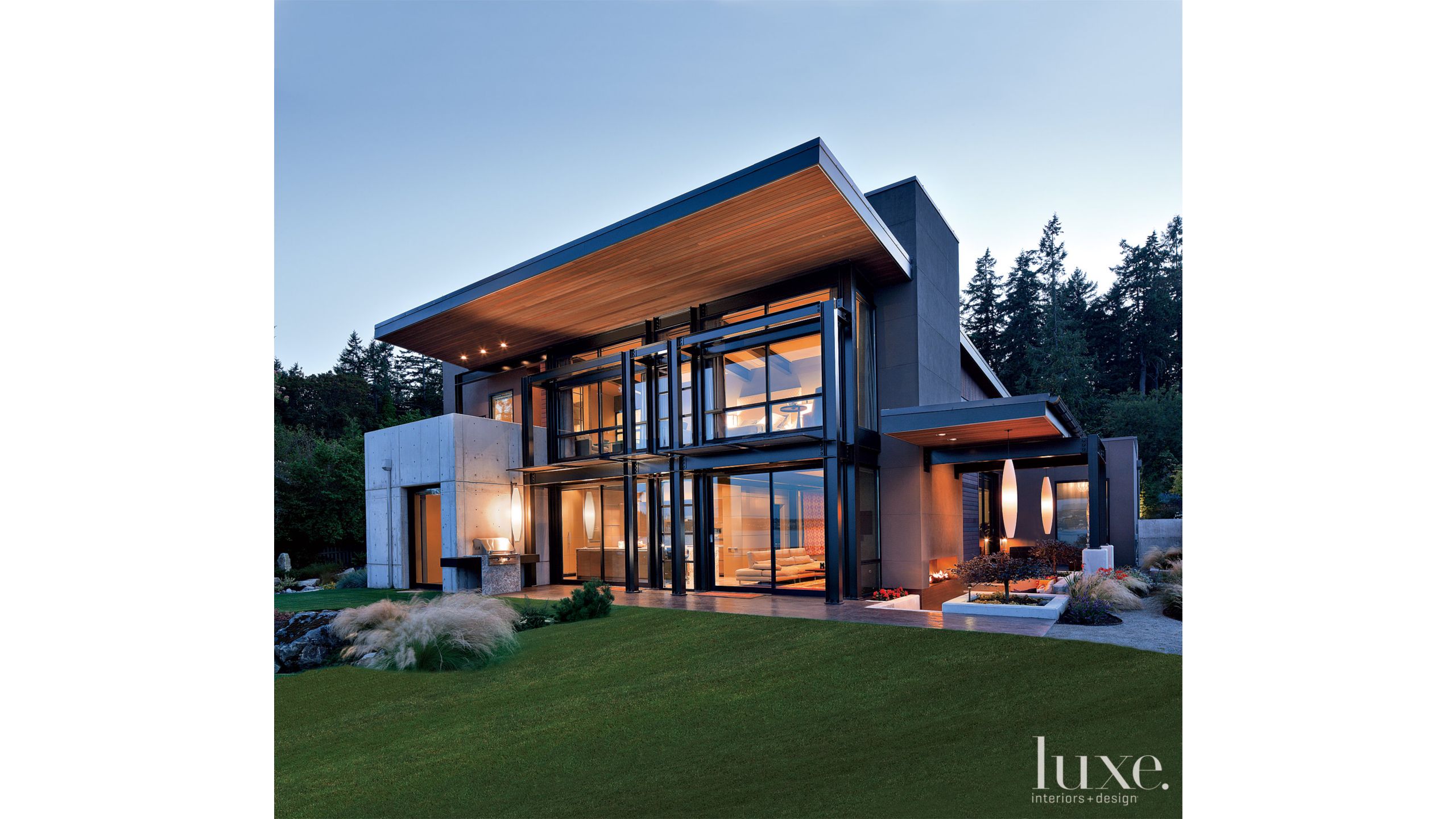 Modern Gray Exterior With Steel Beams Luxe Interiors Design