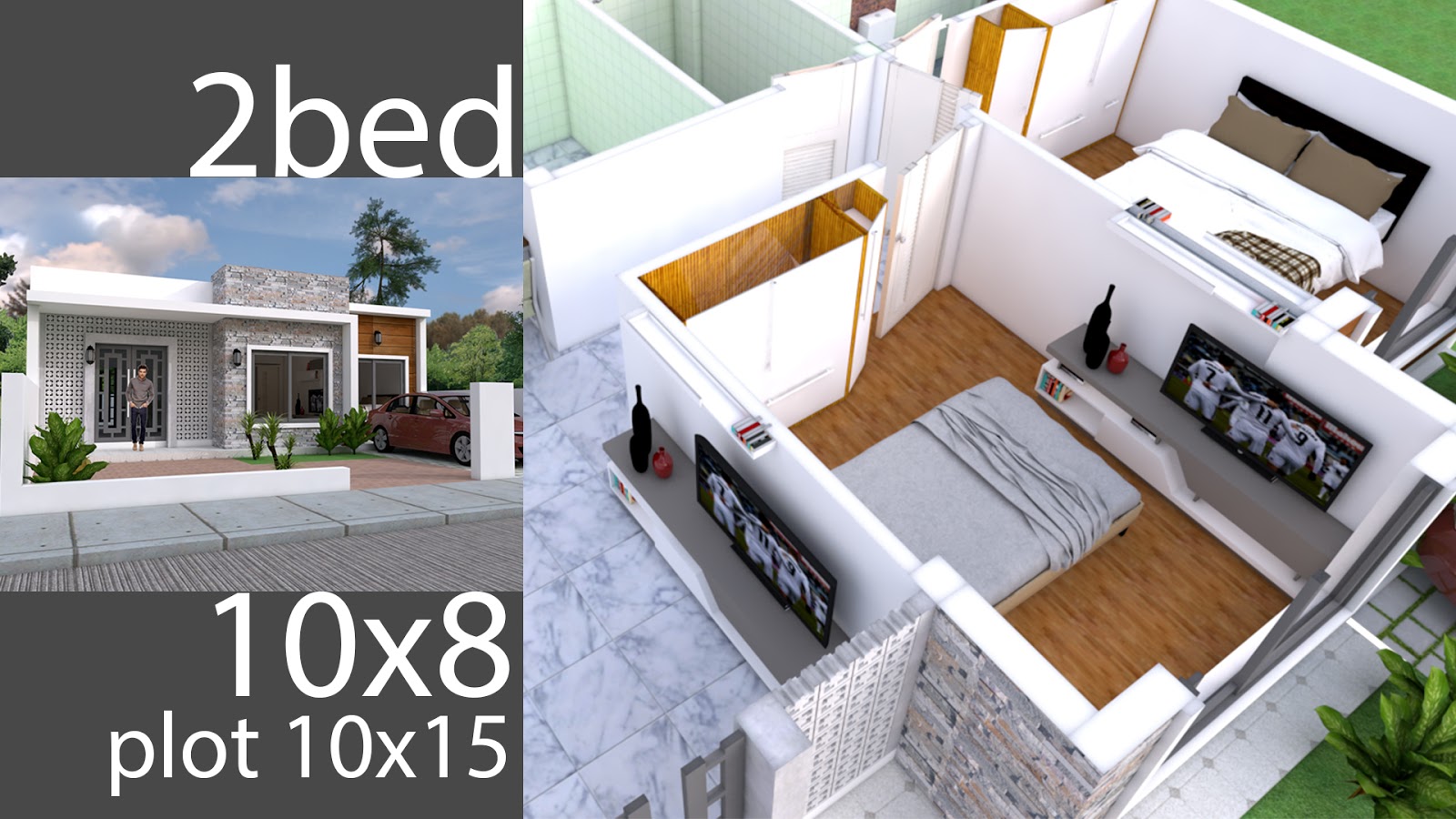 Home Design Plan 10x8m With 2 Bedrooms House Plan Map